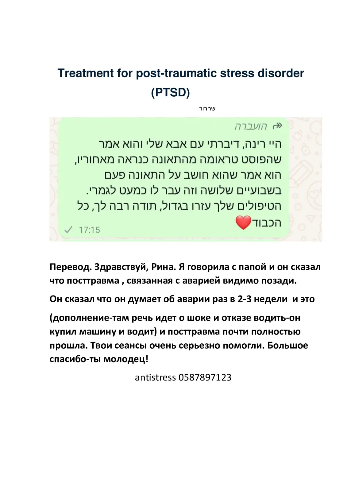 טיפול בטראומות, פחדים ופוביות